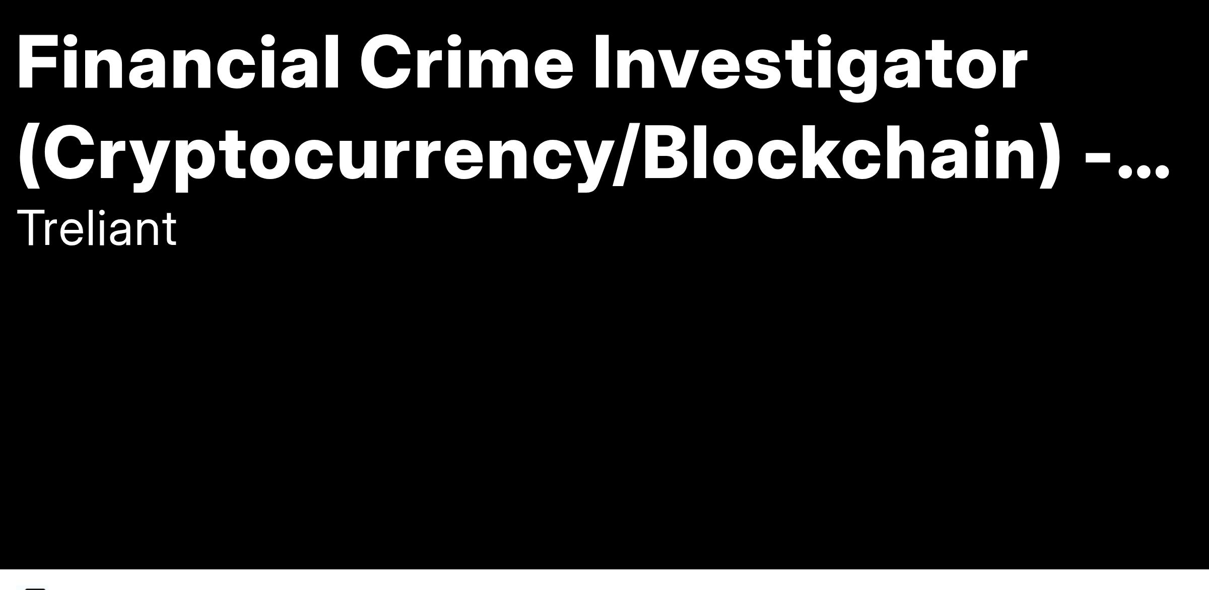 We are looking for Financial Crimes Investigators with an expertise in blockchain and cryptocurrencies to join our team. If you wish to be considered for any future roles we have within Financial Crime, please share your CV with us so we can add you to our future Talent Pool community.