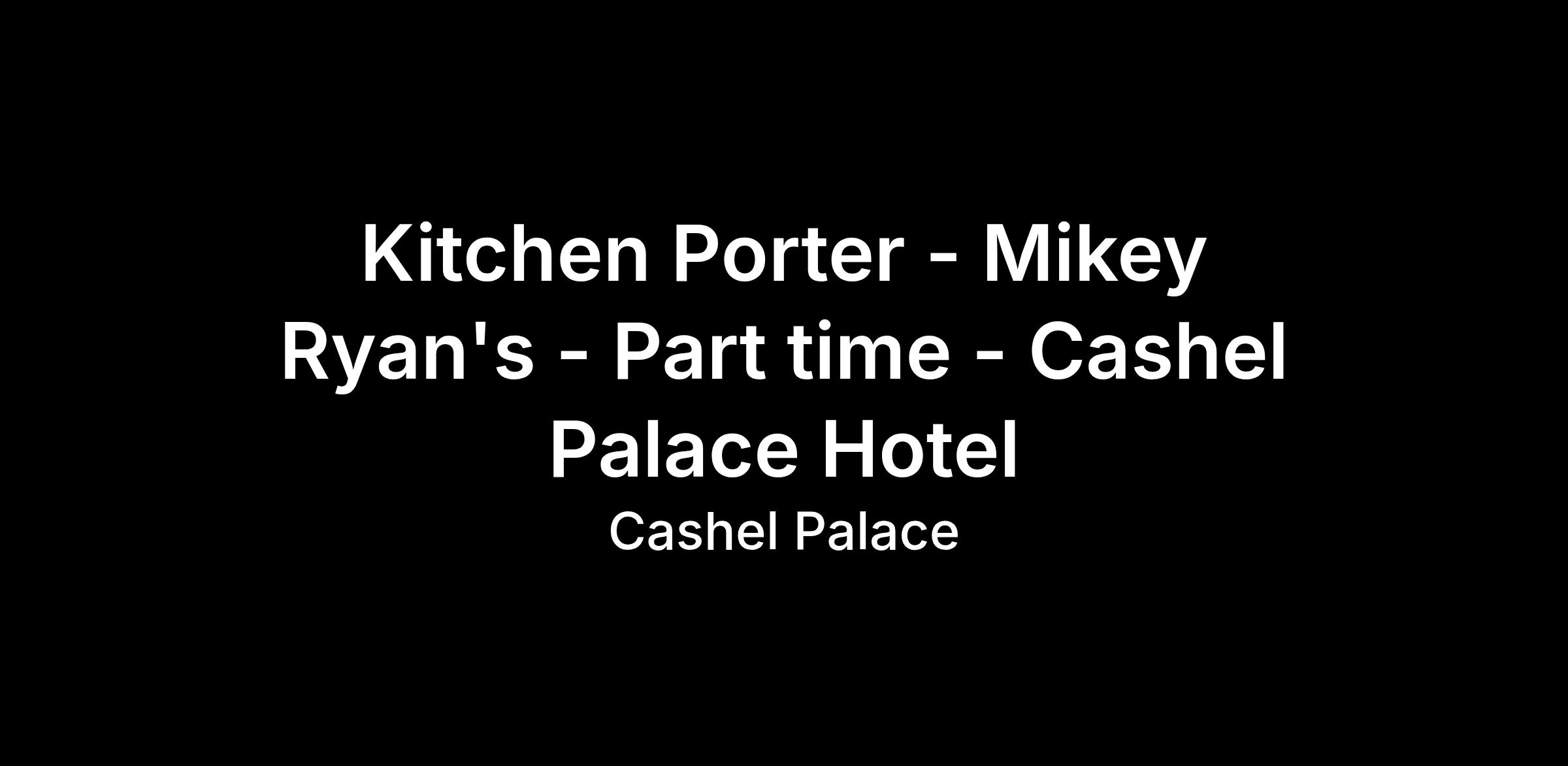 We have a fantastic opportunity for a part time Kitchen Porter to join us at Mikey Ryan's the 5* Cashel Palace Hotel (5 days at 6.5 hours daily)