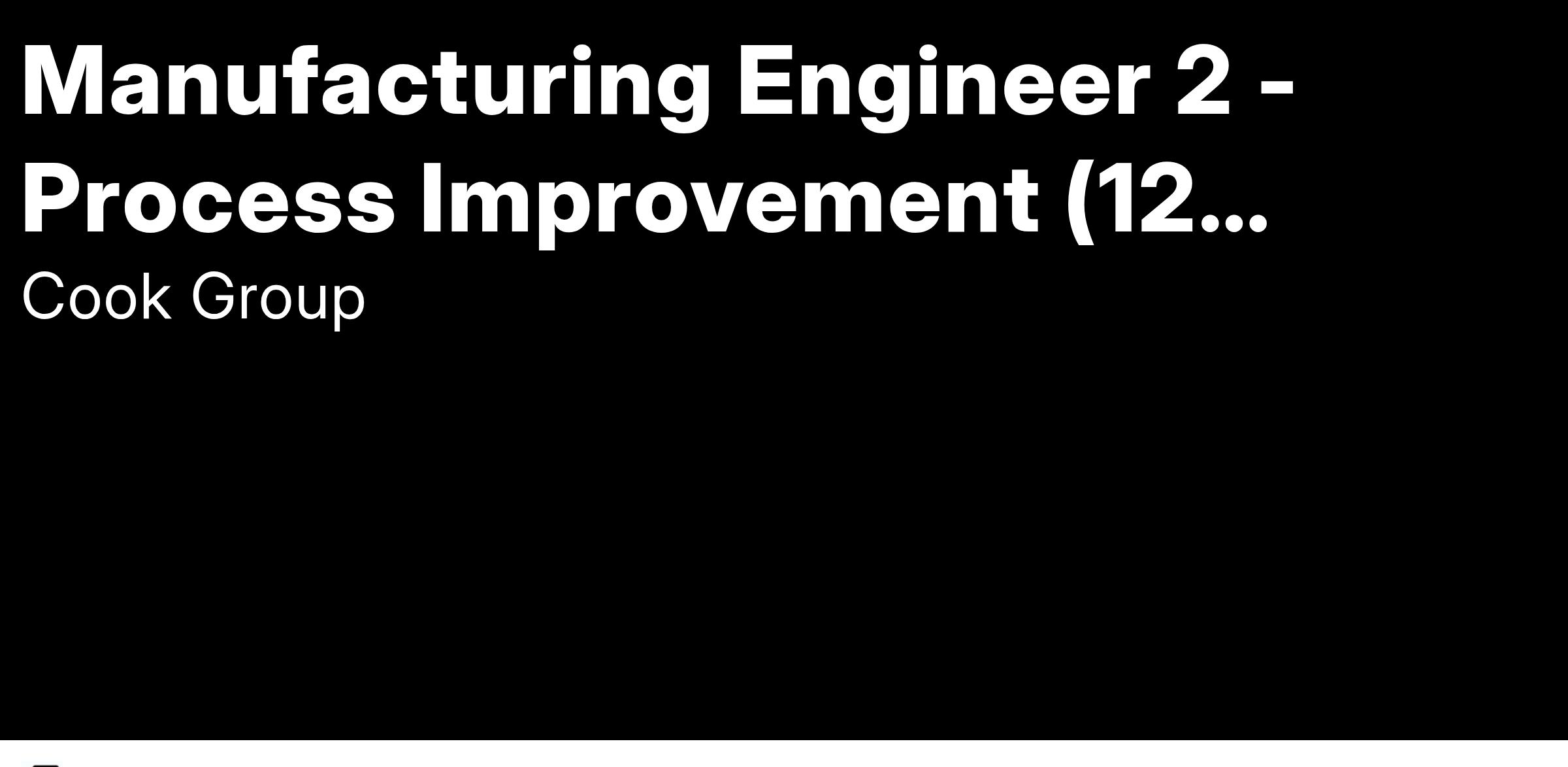 The Manufacturing Engineer 2 (Process Improvement) will be responsible for key activities across a variety of manufacturing engineering disciplines, predominantly the area of Process Improvement. Key activities will include leading projects to either introduce or support and improve existing products. More specific details are listed below.
