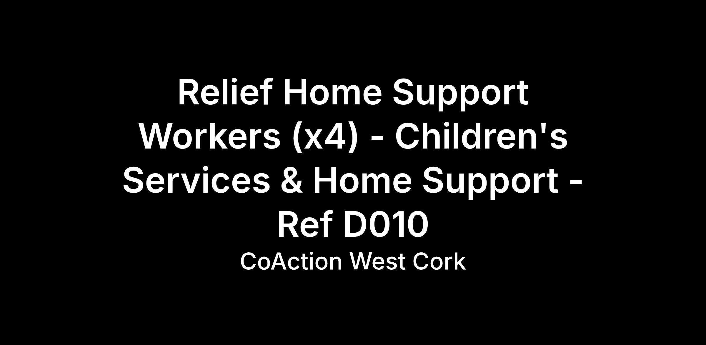 · Home support workers are employed by CoAction to support a child in their own home and therefore the main duties and responsibility are to that child. The