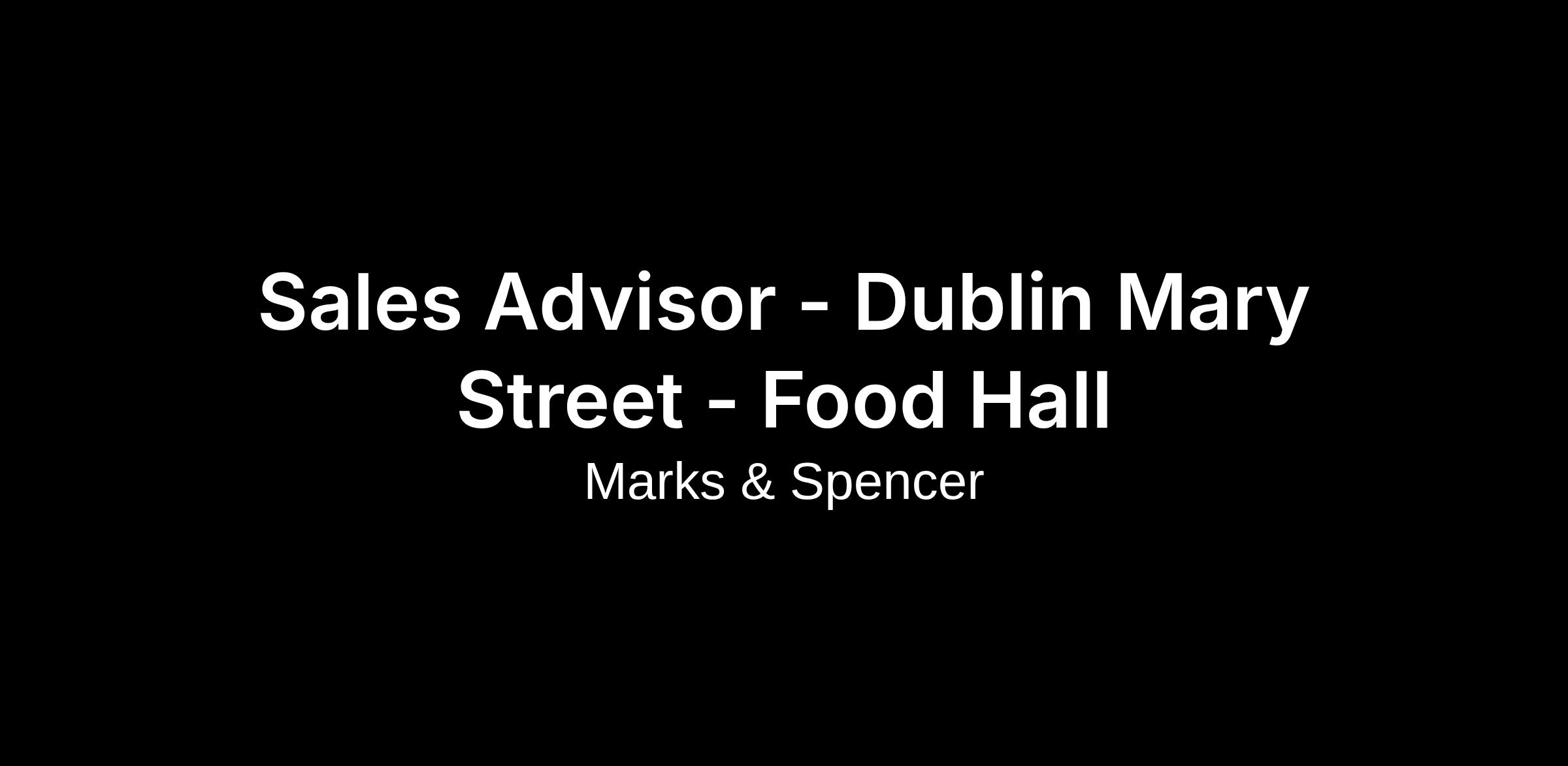 Sales Advisor - Dublin Mary Street - Food Hall