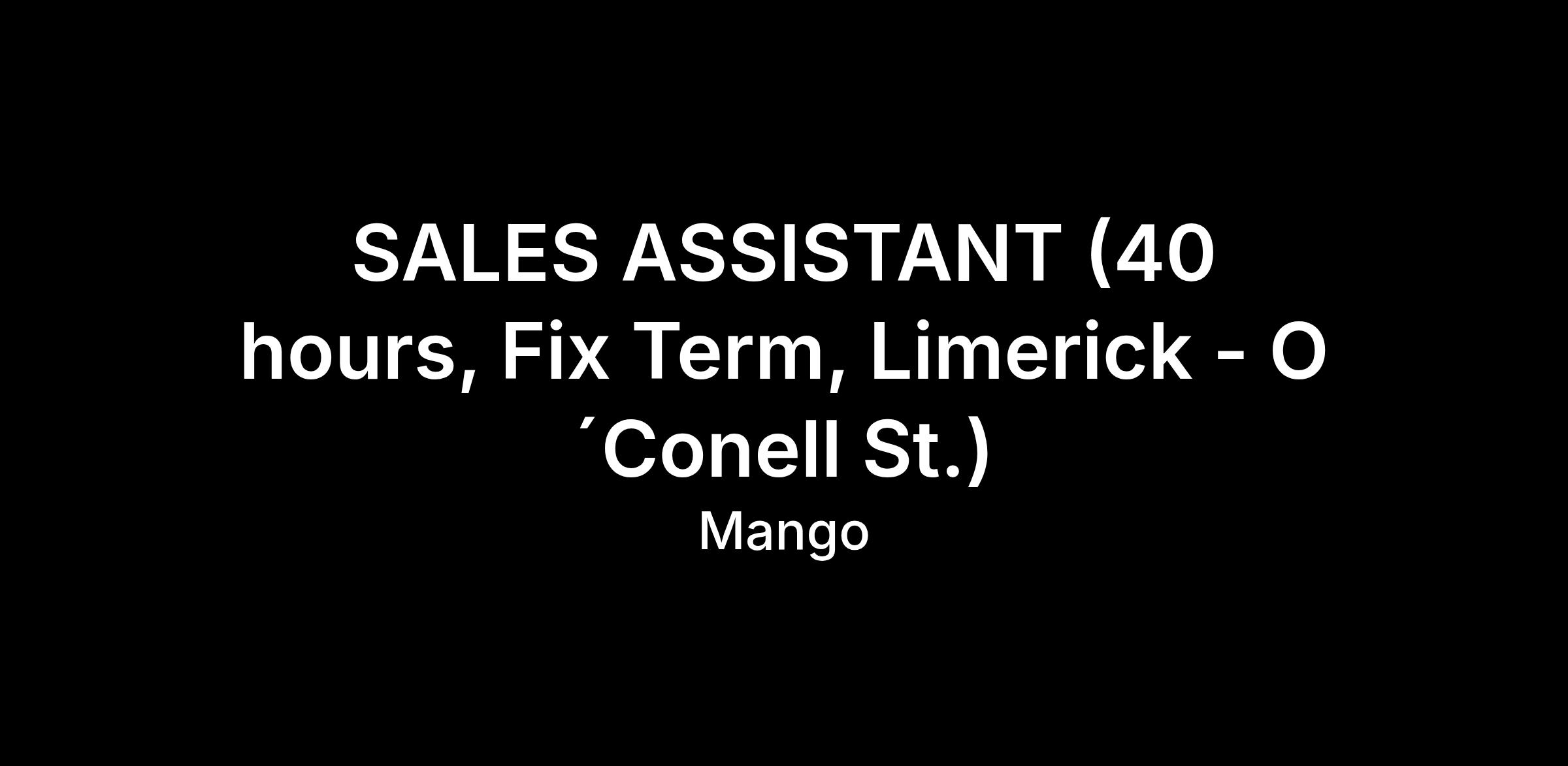 For our store in Limerick - O´Conell St., we are looking for a Sales Assistant to join our team.