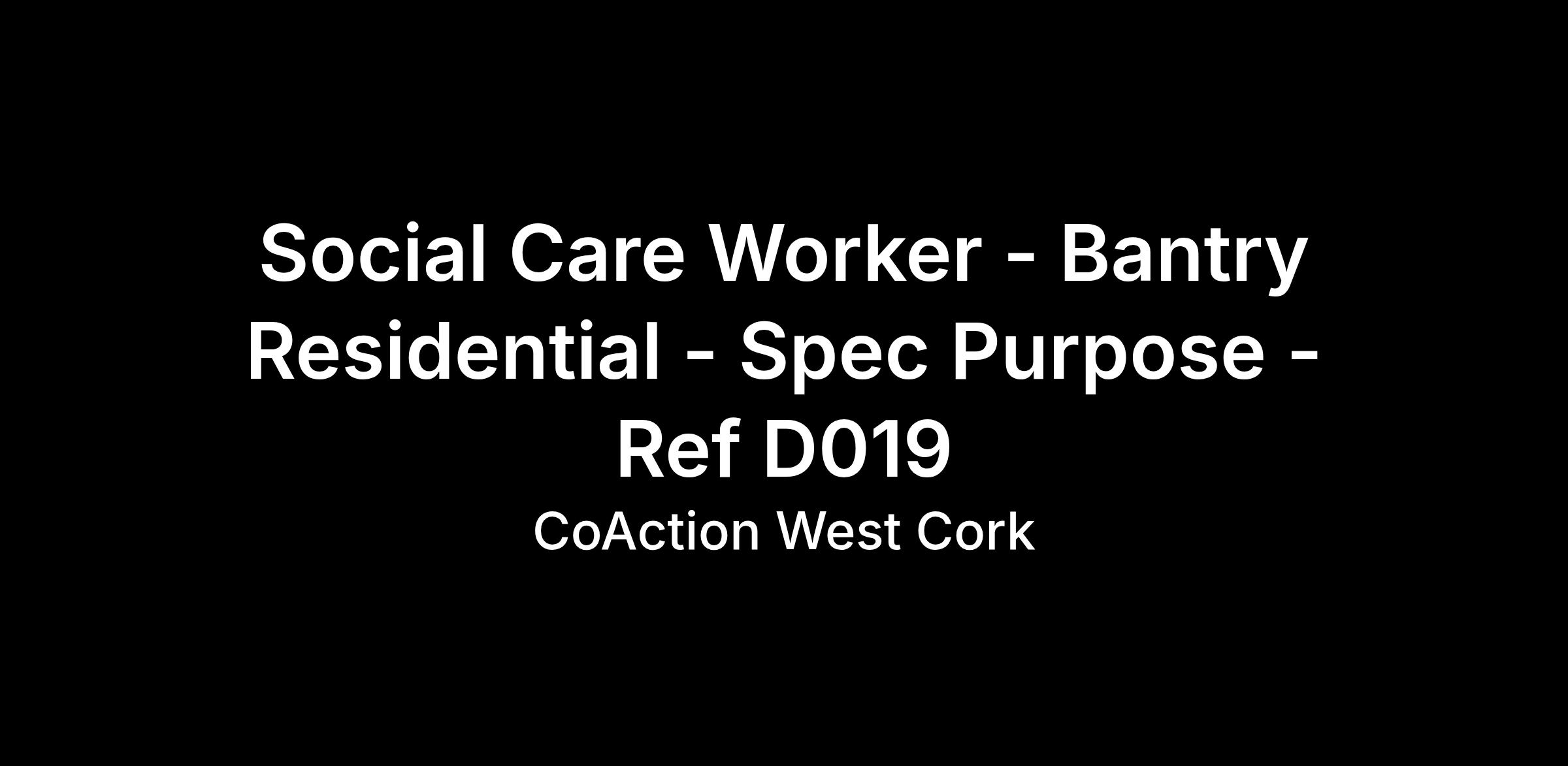 Social Care Worker - Bantry Residential - Spec Purpose - Ref D019