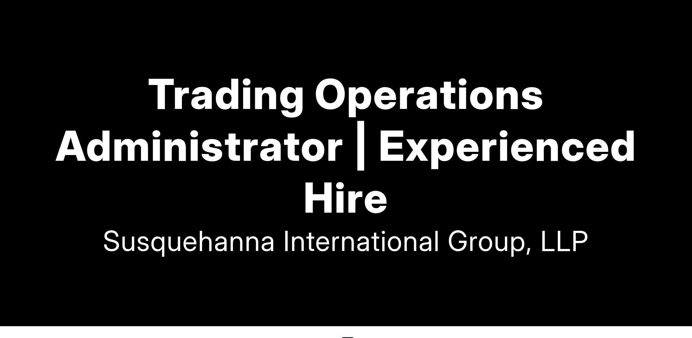 As a Trading Operations Administrator on the Trading Operations team, you will be responsible for Susquehanna’s options broker relationships. This role involves working closely with our traders, brokers, and counterparties. Due to the high volume of trades, we are looking for candidates who have exceptional attention to detail. This role will offer a great exposure to a front office Trading environment and will be an excellent opportunity if you have strong communication skills and an interest in financial markets.